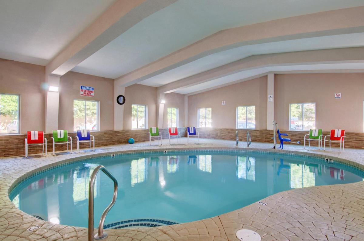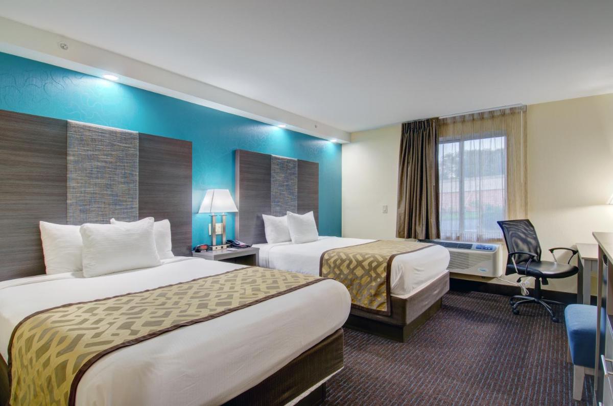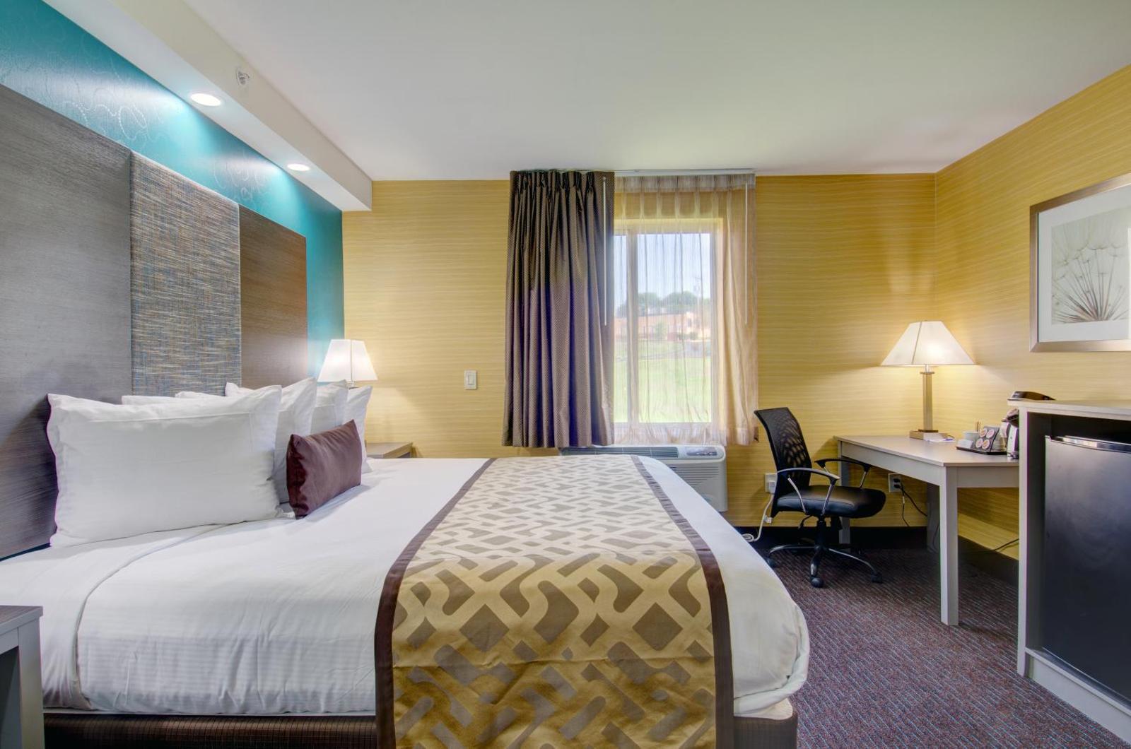 The gallery highlights Baymont by Wyndham Kingston Plymouth Bay’s functional design and interior layout. Images focus on guest rooms with simple furnishings, the indoor pool and hot tub area, and shared spaces such as the fitness and breakfast areas. Exterior views show the hotel’s low-rise structure and parking access, giving a clear sense of scale. Together, the visuals reflect a hotel built for convenience and comfort rather than decorative flair.